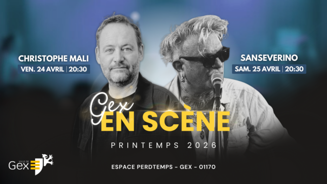 La Ville est heureuse de vous présenter Gex en Scène, les 24 et 25 avril 2026 : un événement musical unique réunissant deux concerts d’exception, le même week-end, à Gex. Au…